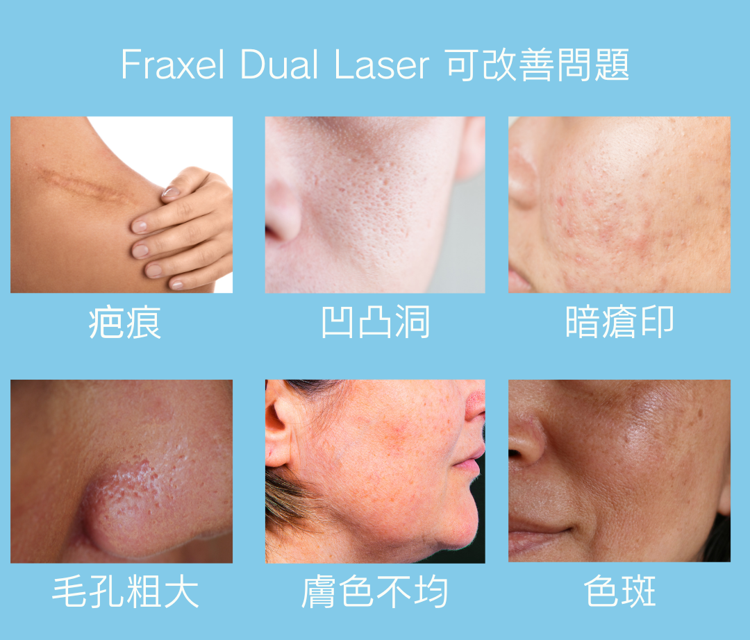 Fraxel Dual Laser 已經獲得世界各大皮膚科醫生推介,除了治療凹凸洞,也應用於修復皮膚疤痕。