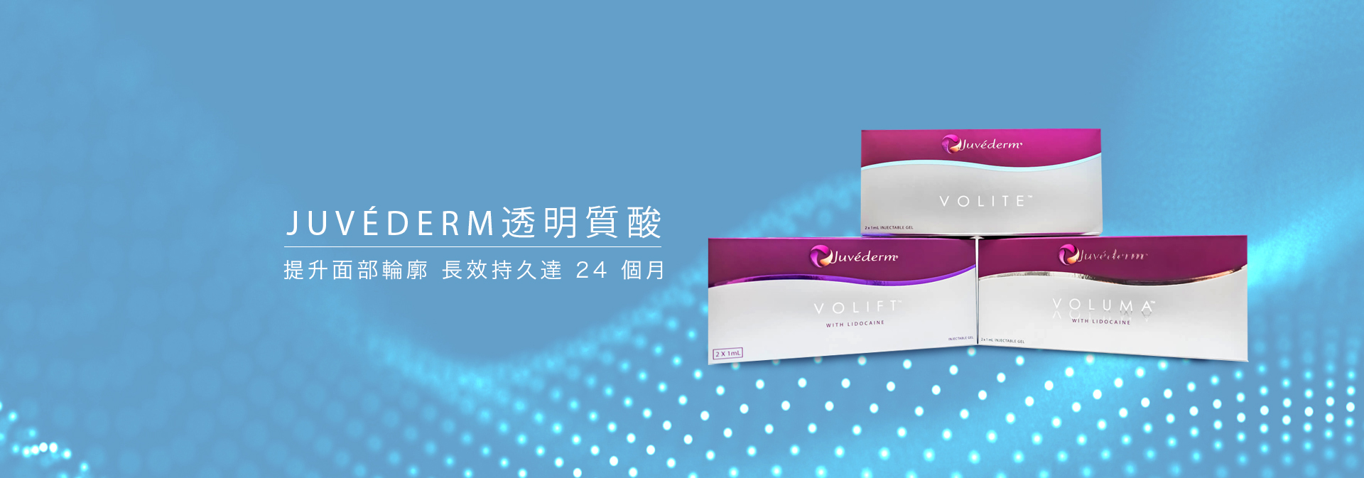 JUVÉDERM® 由透明質酸 Hyaluronic Acid 製造而成,並具有幼滑及高凝聚力的配方,可鎖住水份保濕皮膚,從而增加皮膚密度並改善質感。JUVÉDERM®獲歐盟 (CE) 及美國食品及藥物管理局 (FDA) 認證,在首次療程後能維持長達一年功效*。